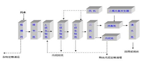 另外也可以采用污泥全回流的方式,使污泥中未完全轉(zhuǎn)化的污染物充分氧化,進(jìn)一步降低污泥產(chǎn)率。為了提高污水的可生化性,可以將生化池分成水解酸化池和好氧生化池運(yùn)行。調(diào)節(jié)池出水進(jìn)入水解酸化池,停留時(shí)間取16h大分子有機(jī)物水解為小分子有機(jī)物,可生化性得以提高。經(jīng)水解酸化后的污水再進(jìn)入好氧池曝氣處理[6]。也有設(shè)計(jì)者嘗試將二沉池污泥回流至水解酸化池而取消污泥池的工藝.